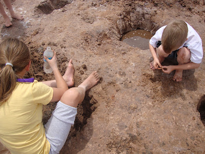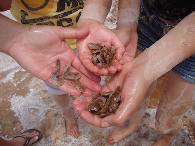With no more time to waste, we got to digging. Make sure you bring buckets, shovels and clothes you don’t mind getting very dirty, salty and sandy. Also bring plenty of sunscreen and wear it! There is absolutely no shade out there, and the reflection from the salt and sand can cause severe sunburns!