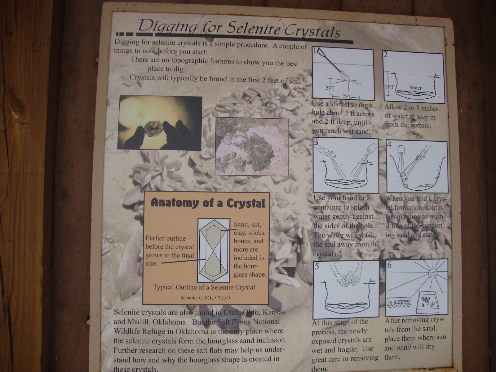 Here’s a bit of advice for you: Don’t mess with Mapquest trying to get to Jet, Oklahoma from Tulsa. Just look at a map (thank goodness for smart phones with map applications) and do what you need to do to get onto Highway 51 which turns into 64, then 412 from your place and start heading west! Stay on 412 all the way through Enid, until you see 132. Go north on 132, then turn left (west) when you come to 64 again. You’ll see an exit on your right for the main entrance to the Great Salt Plains State Park, but if you’re going straight to the digging area DON’T turn there. It’s a long and windy 8 miles around the lake to the park office which is on the COMPLETE opposite side of the park from the Selenite Crystal Digging area. Instead, when you’re back on 64 after 132, continue west, past the turn for the Park Office until you see a sign for the Selenite Crystal Digging area. Trust me. It will save you a solid 30-40 minutes. This is crucial if you’ve already killed nearly 2 hours of your day getting out of the house late, getting stuck in traffic and getting lost in construction and confusing highways!