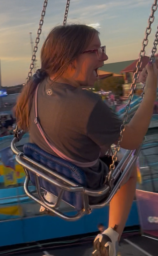 My 11 year-old daughter, Angel, is not so keen on the fair. We went on Sunday with her friend who seemed to have a great time. The fair food and people watching are my favorite things. I do not and will not wait in a line longer than a half hour, which seems to be most of the lines when we go. Jill Munroe had a great idea: If you can go during the week during the day when most people are at work or school, that is when you can get on the rides much faster. About the only ride I will wait in line for that long is the Ferris wheel and the swings.