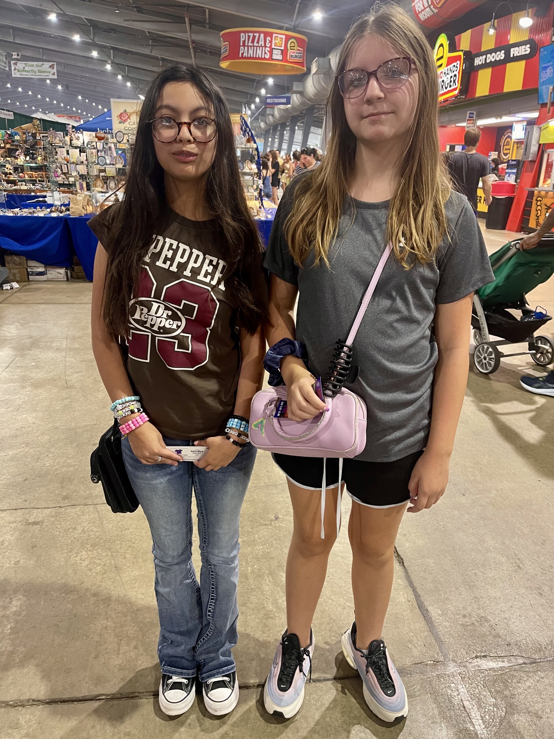 One trick I’ve done for many years whenever the kids and I go to a really big place with a whole lot of people is that, as soon as we get there, I take a full body picture head to toe that clearly shows their hair, color, clothes, and whatever else that distinguishes them in case we get separated. I can immediately forward that picture to security or a police officer. Here’s the picture I took this year of my daughter, Angel, and her friend.