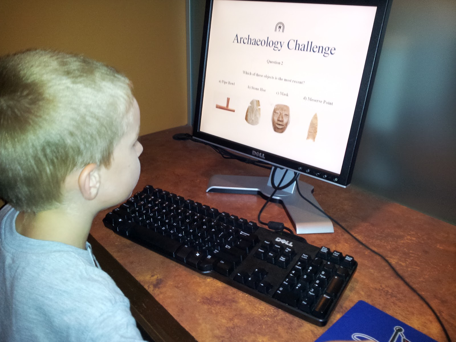 After we finished working through the bag and toured the museum, we headed downstairs to the artifact room, which is super cool. There are HUNDREDS of drawers of pottery, pipes, clothing, bones and so much more that you can look at and many you can touch. There are also computer stations with games and search engines that kept the kids busy for a while.