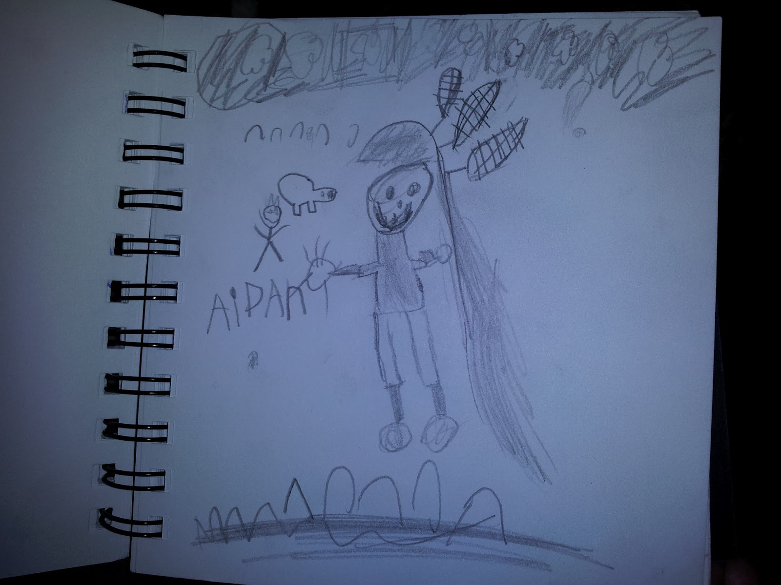 Aidan was inspired by the Native American bonnets and headdresses, and wanted to make his mark in the sketchbook.
