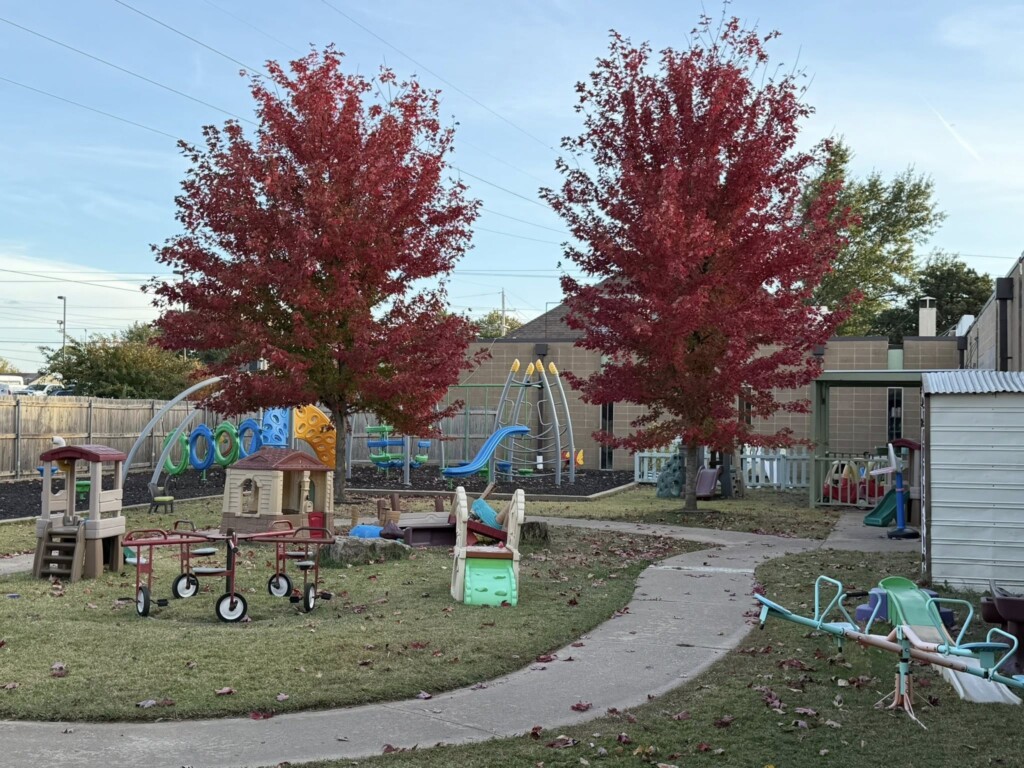 The preschool day begins at 9 a.m. and ends at 2:30 p.m., with arrival available beforehand and optional aftercare offered in the afternoon. Classrooms are intentionally sized to support individual attention, and teacher to child ratios meet or exceed Oklahoma licensing standards for each age group, ensuring children are well supported throughout the day.