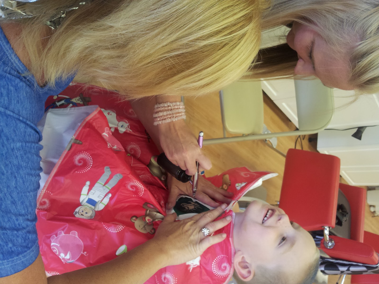 We had so much fun…I wonder if they’d mind if I come to get my hair done and play when I don’t have my kids. I mean…I like sweet chairs, cartoons and tattoos! I wonder if they have tiaras in my size…