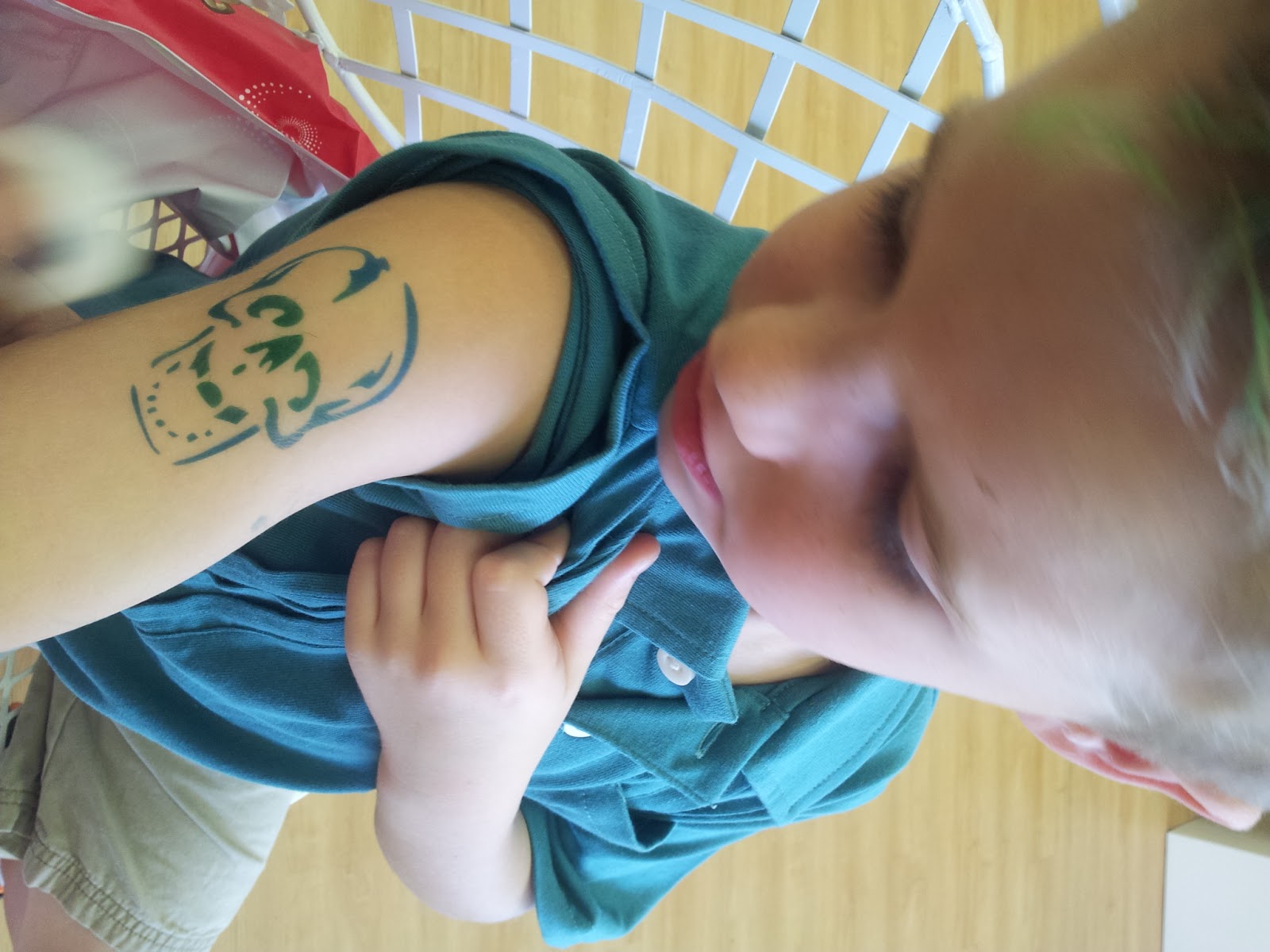 Then, the real icing on the cake was getting airbrush tattoos! Q-cuts has books of several choices for designs, including local school mascots so kids get gear up for game day.